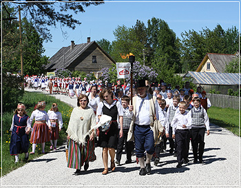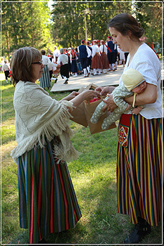 Rahvatantsijaid võeti peoplatsil vastu tervitushüüete ja aplausiga. Rongkäik pudenes laiali ning esinemisjärjekorra loosimise järel seadis end paika ka þürii - Alli Laande Mulgimaalt, Lea Kurvits Elvast ja Liidia Konsa Tartust. Lasterühmi osales sel aastal seitse - Rakvere MTÜ Tarvanpää Selts 3.-4.kl segarühm - juhendaja Maie Orav, Tartu Raatuse Gümnaasiumist 8.-9.kl segarühm "Raatuse" ja 7.kl segarühm "Hoburaud" - mõlema juhendajaks Lea Hanni, Võnnu Keskkoolist 1.-2.kl rühm ja 3.-4.kl rühm - juhendaja Viivika Kook, Tallinna Järveotsa Gümnaasiumi "Viisuveeretajad" 4.-7.kl tüdrukuterühm ja 3.-4.kl segarühm - juhendaja Merle Lättekivi. Lapsed esinesid kõik hästi, þürii tunnistas lasterühmade võitjaks segarühma "Raatuse".